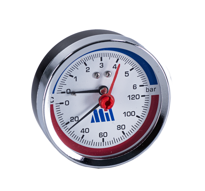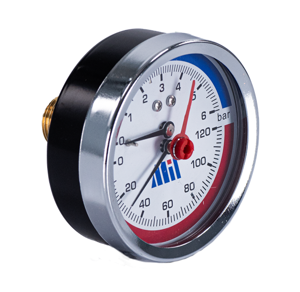 Термоманометр горизонтальный 80 мм 1/2"- 6 бар (0-120C) Millennium